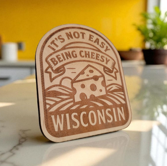 “It’s Not Easy Being Cheesy” Wisconsin Wood Magnet